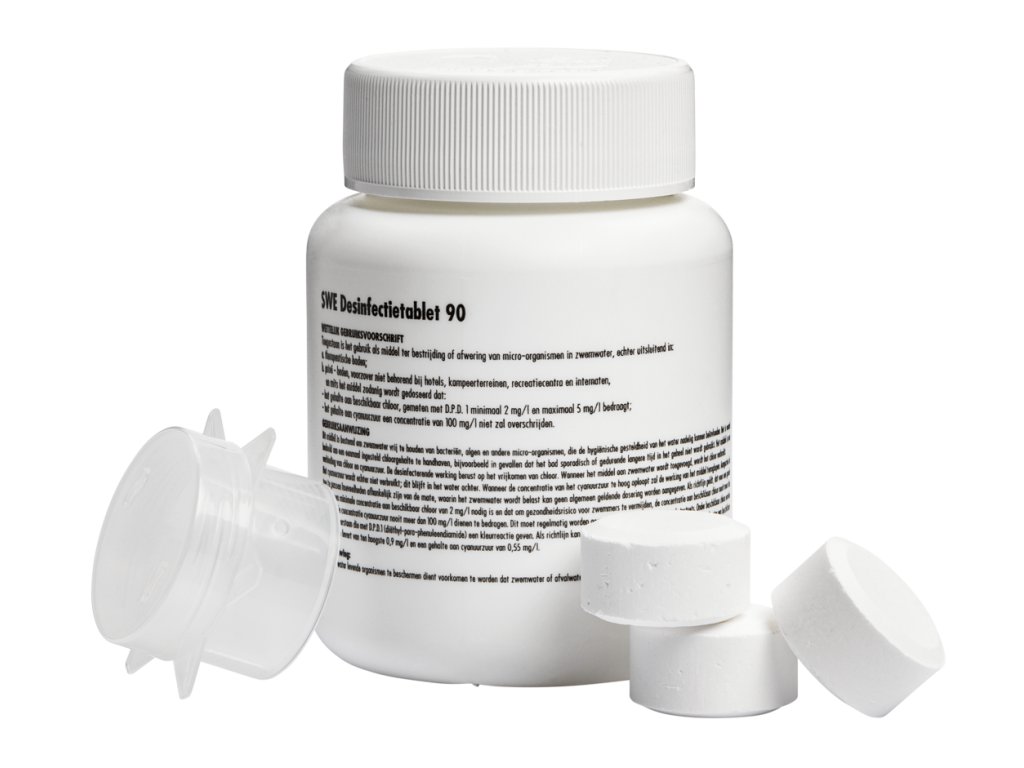 2. Vložte dezinfekční tabletu SWE 90 do dávkovače a dávkovač vložte do skimmeru nebo mřížky/nádoby.